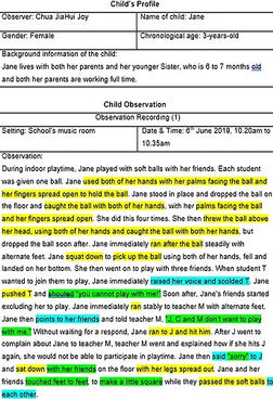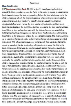 During my first practicum, I had to clock in 88 hours at PCF Sparkletots. I was attached to the N1 class where I observed, recorded, and evaluated children's behavior